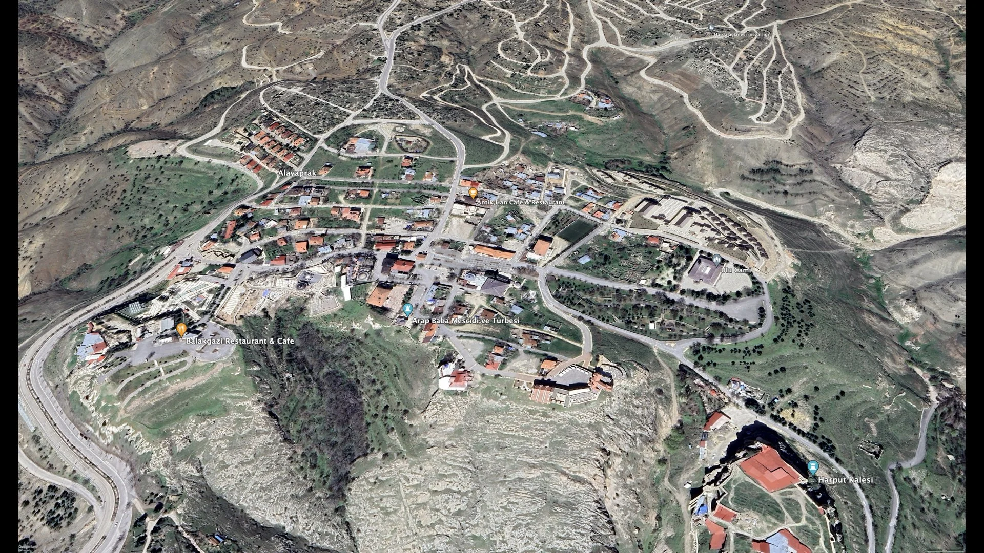 Figure 16a. An aerial view of Harput illustrating the gaps in its urban fabric. Google Earth Map and Google Earth Map reworked by the author.
