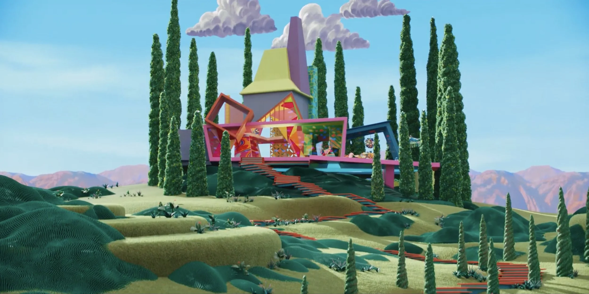Figure 3. The design of Weird Barbie’s house evokes John Lautner’s Elrod House. Still from Barbie, dir. by Greta Gerwig, Warner Bros. Pictures, 2023.