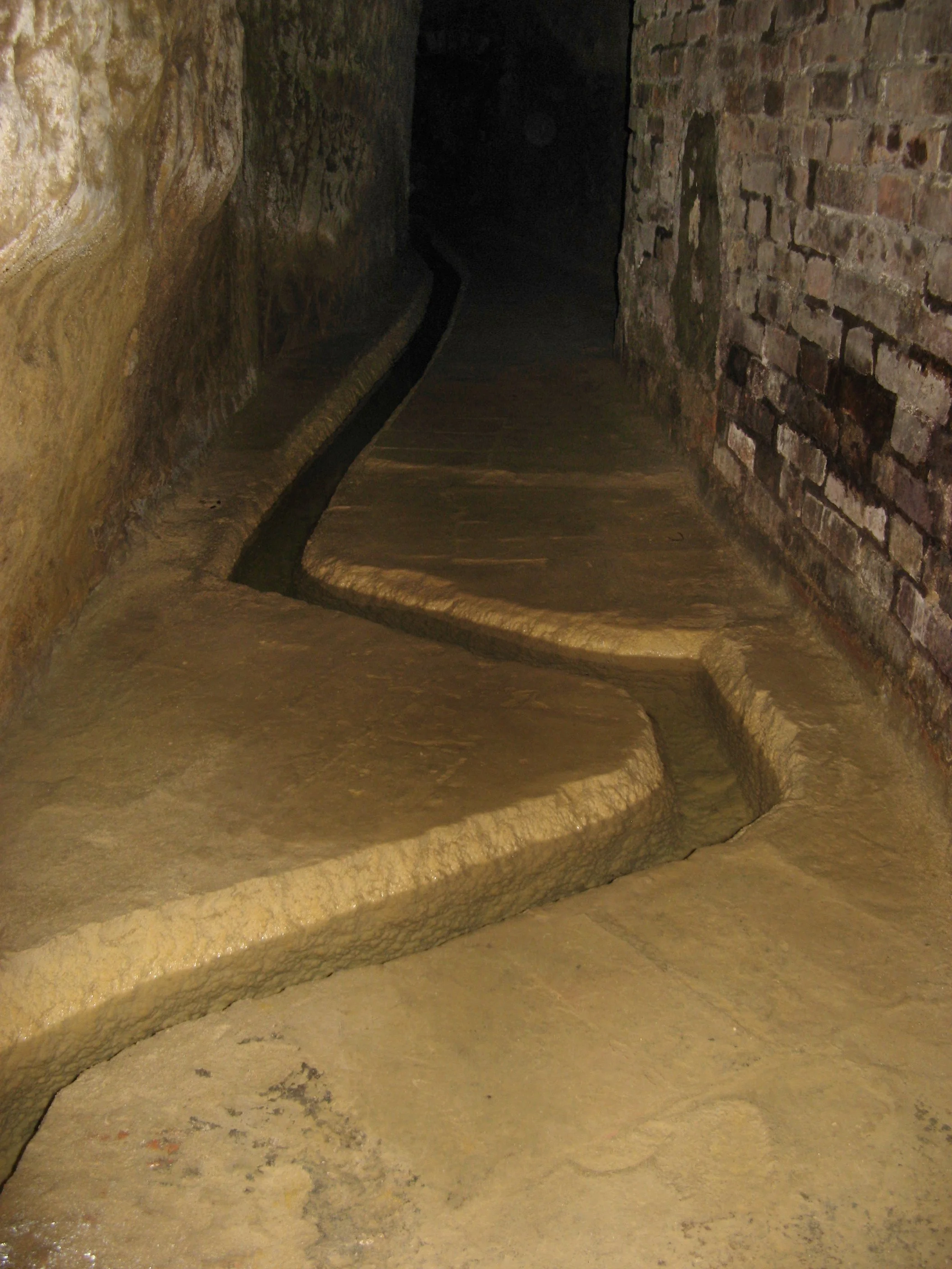 Fig. 5. Underground aqueduct (bottino) with winding water in Siena, Italy.